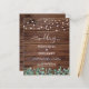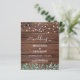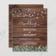 Freuen Sie sich auf Ihre Hochzeit mit eleganten und rustikalen Holzmöbeln mit Lichtern und Eukalyptusgrün. Diese einzigartigen rustikalen Grödner Hochzeitsfeierlichkeiten bieten elegante weiße Saitenleuchten auf Stallholz mit botanischem Grün. Personalisieren Sie diese rustikalen Hochzeitseinladungen mit Namen, Hochzeitsdatum und Ort. Sehen Sie sich unsere Hochzeitskollektion an, um Einladungen, Hochzeitsalben, Gastbücher, Party-Geschenke und vieles mehr zu erhalten! COPYRIGHT © 2020 Judy Burrows, Black Dog Art - Alle Rechte vorbehalten. Budget Rustikale String Lights Eukalyptus Wedding Inv