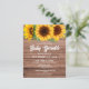 Laden Sie Ihre Lieben zu erschwinglichen Preisen ein, um die bevorstehende Ankunft Ihres kleinen mit unserer charmanten Rustic Fall Wooden Sonnenblumen Baby Dusche Einladung zu feiern. Diese geschmackvoll gestaltete Einladung vereint die Wärme und Schönheit der Herbstsaison mit einem rustikalen Holzboden, der mit blühenden Sonnenblumen geschmückt ist. Die Einladung zeigt einen schönen Holzboden und erinnert an den gemütlichen und einladenden Herbst. Die hellen Sonnenblumen sorgen für eine fröhliche Touch und laden zum Herbstduschen ein. Der Text wird in einem wunderschönen und leicht lesbaren Schriftart angezeigt, der das rustikale und natürliche Motiv der Einladung unterstreicht. Passen Sie die Einladung mit Ihrem Namen, Veranstaltungsdatum, Ort und anderen wichtigen Details an, sodass sie perfekt Ihren Festen entspricht.
