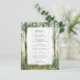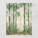 Dieses Hochzeitsmenü bietet eine rustikale Aquarelllandschaft in Grün- und Goldtönen. Der benutzerdefinierbare kohlefreie Text wird auf einem rechteckigen weißen Bildschirm angezeigt. Die Waldlandszene wird auf der Rückseite der Karte wiederholt.