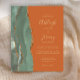 Der links Rand dieser eleganten, modernen Hochzeitseinladung besticht durch eine schlaue, grüne Aquarellgrenze, die mit Imitaten mit Goldmedaille bestickt ist. Der anpassbare Text kombiniert goldfarbene Handschrift, Copperplate und kursiv Schriftart auf einem verbrannten orangen Hintergrund. Auf der Rückseite ist ein passendes Weißgrün- und Goldagatdesign zu sehen.