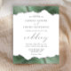 Diese elegante Hochzeitseinladung mit dem Aquarellwald-Agate besticht durch silbernen Imitat-Glitzer an den oberen und unteren Rändern. Das Wort "Hochzeit" erscheint in kalligrafischer Schrift. Passen Sie den kohlegrauen Text mit den Namen der Braut und des Bräutigams und den Einzelheiten der Hochzeit an. Das silberne und grün-silberne Design wird auf der Rückseite wiederholt.