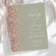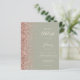 Die links Kulisse dieser eleganten, modernen Hochzeitseinladung besticht durch eine Rose Gold Imitat Glitzer-Grenze. Der anpassbare Text kombiniert Elfenbeinhandschrift, Copperplate und kursiven Schriftart auf einem klugen grünen Hintergrund. Auf der Rückseite ist ein passendes Salbei-Grün- und Rose-Gold-Design.