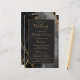 Dieses elegante, moderne Hochzeitsprogramm verfügt über einen schwarzen Achat-Hintergrund, der mit goldfarbenem, künstlichem Glitter besetzt ist. Der Text erscheint in eleganter, goldfarbener Handschrift und Kupferstichschriftarten auf einem schwarzgrauen Rechteck.