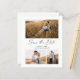 Budget Script 3 Foto Hochzeit Speichern Sie die Datumskarte. Die Rückseite enthält zusätzliche Details. Klicken Sie auf die Schaltfläche Bearbeiten, um dieses Design mit Ihren Fotos und Hochzeitsdetails anzupassen.