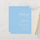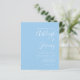 Diese einfache, moderne Hochzeitseinladung mit weißem Text auf einem pastellblauen Hintergrund. Fügen Sie die Namen der Braut und Bräutigam in stilvoller Handschrift Kalligraphie und die Details in sans serif Schriftart. Die Rückseite ist ein passender Schatten von massivem Babyblau.