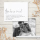 Eine günstige BUDGET-Alternative für eine kleinere Größe von 4,5 x 5,6 Zoll, die ein Gewicht von 110 lbs hat, die ähnlich dick ist wie eine Postkarte (sie ist jedoch nicht als Postkarte geeignet). BITTE BEACHTEN SIE, DASS ES EINE Einladung pro Blatt gibt. Budget Modernes Script Foto Hochzeit. Vielen Dank So Much ist in einem handgeschriebenen Set mit den Details unten. Viel Weiß an der Spitze für eine zeitgenössische Touch! Personalisieren Sie einfach die Erholung des Textes auf Ihre Nachricht und ersetzen Sie das Foto auf der Rückseite durch Ihr eigenes, das automatisch in Schwarz und Weiß wechselt. Wenn Sie den Schwarz-Weiß-Filter entfernen möchten, klicken Sie auf Anpassen und wählen Sie die Filteroption und wählen Sie Kein Filter.