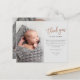 Cette photo moderne de remerciement note comprend un script manuscrit en or rose, un message personnel et une photo verticale sur le devant. Le dos comprend une deuxième photo bébé qui est une photo horizontale à fond saigné.