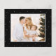 Budget Elegant Modernes Kalligrafie Script Einfach Schwarz und Weiß 5 Foto Collage Multi Foto Weihnachtskarte. Diese festliche, minimalistische, fünf (5) Foto-Urlaubskarte verfügt über eine hübsche Collage aus Foto, 3 Kieferndoodle, "Frohe Weihnachten" Begrüßungstext, der in einem skurrilen handgeschriebenen Signatur-Schriftart geschrieben ist. Auf der Rückseite schneebedeckte Punktmuster mit einem schönen Foto. Hübsche Grußkarte für Ihre Familie und Freunde in der Winterferienzeit.