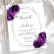 Diese elegante, moderne Hochzeitseinladung besticht durch einen silbernen geometrischen Rahmen, der mit lila und silbernen Blume auf weißem Hintergrund dekoriert ist. Der anpassbare Text kombiniert silbergraue, weißliche Handschrift, Kupferplatte und kursiven Schriftart. Die Rückseite ist weiß.