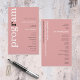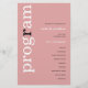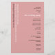 Simple Dusty Rose Programme de mariage de texte. Un prix économique de 5,5" x 8,5", sur un élégant stock LINEN de 110 lb - pour une sensation de luxe à un bon rapport qualité-prix, il est parfait pour les menus, ainsi que des invitations et des programmes, etc. Cette alternative de taille budgétaire est également disponible dans d'autres choix de papier. Le stock de carte SEMI-GLOSS 110 lb est à peu près de la même épaisseur qu'une carte postale, donc fonctionne bien aussi pour les invitations. Le papier FELT 100 lbs est de couleur bouffante, PAS blanc, donc ajoute une touche rustique. Le stock de papier MATTE 80lbs est blanc vif, pour une impression nette, idéal pour vos menus et programmes, tandis que le papier SATIN 80lbs est mince et léger Un design typographique moderne avec Programme en grande typographie en blanc avec le "r" en noir, pivoté et à gauche sur un arrière - plan de rose rose poussiéreux.