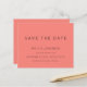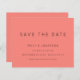 Einfache Typografie Korallen Rose Save the Date. Ein Preis SMALLER 4,5" x 5,6" Alternative. Erhältlich in einem SEMI-GLOSS 110 lb CARD STOCK, der die Standardoption (dicker für Einladungen) ist, ODER einem SATIN FINISH 80 lb THINNER PAPER STOCK (ideal für Gehäuse). Minimalistische Eleganz mit Save the Date in einem modernen Set-Skript.Die Erholung des Textes können Sie leicht personalisieren.Hier in schwarz auf Rosa der Dusty-Rose dargestellt, aber die Text- und Hintergrundfarben können geändert werden, wenn Sie über die weitere Option anpassen möchten.