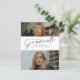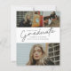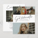 Dieses moderne, elegante und stilvolle Foto Abschluss Einladungs-Kombinat mit Skriptabsolvent und individualisierbarem Namen, Schule und drei Foto Collage auf der Vorderseite. Die Rückseite bietet Glückwünsche und Veranstaltungsdetails mit einem zusätzlichen Foto. Eine tolle Art, Ihren Absolventen zu präsentieren.
