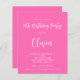 Budget Skript Hot Pink 10. Geburtstagsparty. Eine preisgünstige Alternative mit einem 4,5 x 5,6 Zoll Glanz, ähnlich dick wie eine Postkarte. Es gibt EINS pro Blatt. Minimalistischer typografischer Stil für das zehnte oder jedes andere Geburtstagsmädchen. Vollständig anpassbar. Ändern Sie den Text einfach und Sie können die Farben von Text und Hintergrund auch über Bearbeiten weiter ändern, wenn Sie möchten.