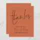 Budget Skript Neu Mr. Wedding Terracotta Danke. Ein Preis SMALLER 4,5" x 5,6" Alternative. Erhältlich in einem SEMI GLOSS 110lb CARD STOCK, welches die Standardoption ist (empfohlen für Einladungen), ODER einem SATIN FINISH 80lb THINNER PAPER STOCK (ideal für Gehäuse). Umschläge sind optional und etwas größer als die Kartengröße. Vielen Dank und Mr. & Mrs. sind Set in einem stilvollen handgeschriebenen Skript auf der Vorderseite und die Erholung des Textes auf jeder Seite können Sie leicht mit Ihren Namen, und Ihr Dank an Ihre Gäste zu personalisieren. Kann über die weitere Option auf eine beliebige Farbe Ihrer Wahl geändert werden.
