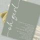 Budget Minimalistisches Skript Oh Girl Sage Baby Dusche. Ein Preis SMALLER 4,5" x 5,6" Alternative. Erhältlich in einem SEMI GLOSS 110lb CARD STOCK ähnlich dick wie eine Postkarte. Es gibt EINS pro Blatt. Zeitgenössischer Stil mit Oh Girl rotiert und auf die links Seite und leicht personalisieren Sie die Erholung des Textes auf Ihre eigenen Details.