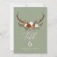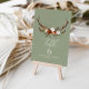 Botanischer Blumenstrauß Terrakotta, schwarz, natürlich und Salbei grüne Antlers rustikale Tischnummer Hochzeitstag Dekoration. Auf Trend Skript-Text, Teil einer passenden Hochzeitssuite.