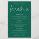 Budget Stilvolles Skript White Emerald Green Wedding Menü. Ein Budget von 5,5 Zoll x 8,5 Zoll, Ein elegantes typografisches Design in Smaragd mit weißer Typografie und ein stilvolles Set-Skript für das Header Menu. Personalisieren Sie einfach die Erholung des Textes auf Ihre eigenen Details, die Platz für Ihre veganen oder vegetarischen Optionen enthalten. Sie können auch Textstile und -farben sowie die Hintergrundfarben ändern, indem Sie die Option Weitere Einstellungen vornehmen.