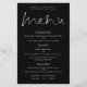 Budget Stilvolles Skript White Black Wedding Menü. Ein preiswertes 5,5" x 8,5", Ein elegantes typografisches Design in klassischem Schwarz mit weißer Typografie und ein stilvolles Set-Script für das Header Menu. Personalisieren Sie einfach die Erholung des Textes auf Ihre eigenen Details, die Platz für Ihre veganen oder vegetarischen Optionen enthalten. Sie können auch Textstile und -farben sowie die Hintergrundfarben ändern, indem Sie die Option Weitere Einstellungen vornehmen.