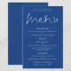 Budget Stilvolles Skript White Blue Wedding Menü. Ein preiswertes 5.5" x 8.5",Ein elegantes typografisches Design in Mittelblau mit weißer Typografie und ein stilvolles Set-Skript für das Header Menu. Personalisieren Sie einfach die Erholung des Textes auf Ihre eigenen Details, die Platz für Ihre veganen oder vegetarischen Optionen enthalten. Sie können auch Textstile und -farben sowie die Hintergrundfarben ändern, indem Sie die Option Weitere Einstellungen vornehmen.