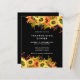 Sonnenblume Berry Erntedank Dinner Black Einladung. Ein Preis SMALLER 4,5" x 5,6" Alternative. Erhältlich in einem SEMI-GLOSS 110 lb CARD STOCK, der die Standardoption (dicker für Einladungen) ist, ODER einem SATIN FINISH 80 lb THINNER PAPER STOCK (ideal für Gehäuse). Umschläge sind optional und etwas größer als die Kartengröße. Eine schöne Wildblumen Blumendesign in Herbstfarben, um Ihre Freunde und Familie zu Ihrem Erntedank Dinner Party einladen. Die anspruchsvollen Botanicals schmücken Oben und Unterseite, und leicht personalisieren den Text in Weiß vor einem klassischen schwarzen Hintergrund.