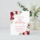 Red roses and blush pink peonies are nestled in dark green leaves on this beautiful and unique birthday invitation.