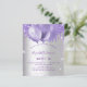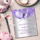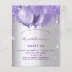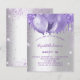 Ein stilvolles Imitat mit silberfarbenem Hintergrund. Mit violettem, lavendelfarbenem Imitat, Glitzer und Ballons dekoriert. Personalisieren und fügen Sie Namen, Alter und Party Details hinzu. Der Name wird mit einem handgeschriebenen Stilskript geschrieben