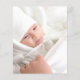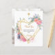 Eine moderne und elegante Taufe danke Ihnen Karte. Ein eleganter weißer Hintergrund mit geometrisch geformtem, herzenförmigen Rahmen, rosa Blumen und Grün. Ein goldenes Kreuz. Personalisieren Sie und fügen Sie Ihr Foto des Kindes, danke Ihnen Notiz und Name.