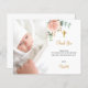 Eine moderne und elegante Taufe danke Ihnen Karte. Ein schick weißer Hintergrund mit einem Aquarell in Rosa, Rose Gold, Eukalyptusgrün und Imitaten goldenen Blätter. Personalisieren Sie und fügen Sie Ihr Foto des Kindes, danke Ihnen Notiz und Name.