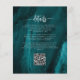 This elegant wedding invitation features teal blue floral bouquets set off with silver faux foil greenery in two corners, on a background image of teal watercolor agate. The customizable silver gray text combines serif, italic and handwriting fonts. The reverse side provides space for wedding details, along with a QR code guests can scan to visit your website and RSVP.