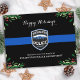 Mit dieser einzigartigen Thin Blue Line Police Department Weihnachtskarte senden Sie frohe Weihnachtsgrüße an Freunde, Geschäftsleute , andere Strafverfolgungsbehörden und Ihre Gemeinde - Moderne Schwarz und Blau mit heiligen Blätter und Beeren. Personalisieren Sie mit dem Logo, der Nachricht und der Abteilung der Polizeiabteilung. Diese preiswerten Weihnachtspostkarten müssen als übergroße Postkarten verschickt werden, daher können die Postkarten mit normalen Versandkosten belastet sein, benötigen aber weder einen Umschlag noch eine Rücksendekarte. COPYRIGHT © 2020 Judy Burrows, Black Dog Art - Alle Rechte vorbehalten. Budget Thin Blue Line Polizeiabteilung Weihnachtsfeiertag Postkarte