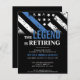 Dieses Design verfügt über eine Polizeiflagge mit schwarz-weißen Streifen und einen dünnen blauen Streifen. Der Text "The Legend is Retiring" setzt sich vor allem aus den Party für den pensionierten Strafverfolgungsbeamten, Sheriff, Kapitän oder Chefs des Party für das Ruhestand zusammen.