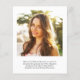 Diese stilvolle Abschluss-Ankündigung ist eine preisgünstige Option, um die Leistungen Ihres Absolventen anzukündigen. Sie beinhaltet das Foto Ihres Absolventen, "Graduate", geschrieben in einem trendigen Typ Typografie mit einzigartigen Linien und seinem Namen, Schule und Klassenjahr. Fügen Sie auf der Rückseite ein zusätzliches Foto und eine personalisierte Meldung hinzu.