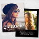Diese stilvolle Abschluss-Ankündigung ist eine preisgünstige Option, um die Leistungen Ihres Absolventen anzukündigen. Sie beinhaltet das Foto Ihres Absolventen, "Graduate", geschrieben in trendiger, weißer Typografie mit einzigartigen Linien und seinem Namen, seiner Schule und seinem Jahr. Fügen Sie auf der Rückseite ein zusätzliches Foto und eine personalisierte Meldung in schlichter weißer Typografie auf schwarzem Hintergrund hinzu.