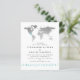 Carte du monde en faux argent chic avec un coeur mobile afin que vous puissiez créer une élégante invitation à thème de voyage bleu, argent et blanc turquoise turquoise pour une réception locale ou mariage de destination. CONSEIL DESIGNER" Cliquez sur "customiser plus loin" pour déplacer le coeur, changer la couleur de l'arrière - plan et du texte, changer les polices, ou réorganiser les éléments et créer votre propre design à l'aide de notre image de carte en feuille d'or faux rose unique. Parfait pour un mariage à l'étranger et des célébrations d'anniversaire de destination aventure partout dans le monde. Veuillez noter que ce document est imprimé sur du papier léger plus fin. Pour plus d'options sur papier, visitez la page Destinations des raisins de papier Zazzle Designer Collections pour coordonner les articles sur du papier plus robuste.