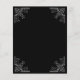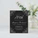 Diese elegante Vintag-inspirierte Geburtstagsfeier lädt mit silbergrauen Schriftzeichen und Serifen-Schriftart auf schwarzem Hintergrund gerahmt durch verzierte, silbergraue Motive in allen vier Ecken ein. Die Eckmotive werden auf der Rückseite wiederholt.
