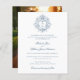 Diese preisgünstige Hochzeitseinladung besticht durch ein ausgeklügeltes Design mit einem Vintag inspiriert Wappen, das mit aufwändigen botanischen Details und einem individuell anpassbaren Monogramm geschmückt ist und zeitlose Eleganz in kompakter Form bietet. Die raffinierte Kombination aus klassischer Serif und fließendem Script-Schriftart vermittelt ein Gefühl von Formalität und Romantik, während die weiche blaue Farbpalette die anmutige und traditionelle Ästhetik verstärkt. Die Rückseite bietet Platz für eine persönliche Touch mit einem Foto des Ehepaares, was Wärme und Charme zu dieser kleineren, wirtschaftlicheren Option. Ideal für Paare, die erschwingliche Eleganz ohne Kompromisse beim Stil suchen, verbindet diese Einladung Raffinesse und Praxisnähe.