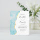 The left-hand edge of this elegant modern wedding invitation features an aqua blue watercolor agate border trimmed with faux gold foil. The customizable text combines handwriting, copperplate and italic fonts in charcoal gray on a white background. The reverse side provides space for wedding details on a solid white background, along with a QR code guests can scan to visit your website and RSVP, which saves the cost of printing and mailing separate RSVP cards.