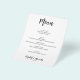 Ein ausgezeichnetes Preis-Leistungs-Verhältnis, ein weißes Dinner-Menü, gedruckt auf dünneren, 80 lb unbeschichteten matten Papier, bietet Ihre Speisen in schicken Schriften. Ideal für einen modernen Hochzeitsempfang, ein Hochzeitsdinner, ein Jubiläum-Party oder eine besondere Veranstaltung mit einem Sit-down-Dinner. Maßen 4.5" x 5.6", aber Sie können aus 3 Papiergrößen für Ihre Speisekarte wählen. MEHR DESIGNS und Farben in unserem Geschäft. Der Live Design Service hilft Ihnen bei der Gestaltung Ihres Designs, den Schriftart oder bei der Farbanpassung.
