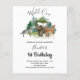 Wild One, bewaldete Geburtstagsparty. Ein weißer Hintergrund mit wasserfarbenen Wald- und Waldtieren, Wolf, Bär und Reh. Personalisieren und fügen Sie einen Namen und Party-Details hinzu.