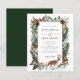 Planen Sie Ihre Hochzeit im Winter? Karo aus dieser rustikalen Winter Pine Cone Greenery Evergreen Wedding Invitation. Es hat einen wunderschönen, illustrierten Aquarell mit Beeren, Kiefernzäunen und einem niedlichen Reh im Vordergrund. Die Rückseite ist schick dunkelgrün, aber für eine persönliche Touch können Sie sie ganz einfach in eine beliebige Farbe umwandeln. Schöne Winterhochzeit!