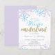 Budget Niedlich Winter Onederland Einladung zum ersten Geburtstag mit lila und blauen Schneeflocken und Glitzer. Digitale Illustration von Kristine Lee. Weitere Informationen finden Sie unter www.kristineleedesigns.com