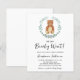 Niedliches Babyduschbudget zum Thema Bären mit einer handgemalten Abbildung eines Krübes mit Eukalyptusgrün im Wasser. In dem Text steht "Wir können frühzeitig warten!" in stylischer Typografie. Ideal für eine geschlechtsneutrale Dusche. Einfach anpassbar. Original Wasserfarbe © Michele Davies.