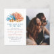 Diese Festveranstaltung zum Thema Küste ist ideal für Paare, die das Meer Liebe haben. Mit den Worten "ZWEI WENIGER FISH IM MEER" in einem blauen Sans-Serif-Schriftart unter zwei Clownfischen und blauen und orangen Korallenriffen. Eine einfache, aber moderne Typografie zeigt Ihre Hochzeitsdetails mit Ihren Namen, die in einer orangefarbenen Farbe auf die links und ein benutzerdefiniertes Foto auf der rechten Seite hervorgehoben sind. Umkehrend zu einem nautischen Muster mit Seil, Korallenriff und Fisch. Im Rahmen der Auswahl des Haushalts hier auf Zazzle kommen diese Einladungen in begrenzter Größe und in Papiervorräten. Wenn Sie eine andere Größe oder einen anderen Papiervorrat benötigen, kann dieses Design mit dem Design Transfer Tool für weitere Optionen in ein Standardformat übertragen werden.