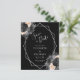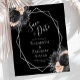 Diese elegante moderne Hochzeit bewahrt die Dattelkarte mit einem silbernen geometrischen Rahmen, der mit Pfirsich, schwarzen und silbernen Blumensträußen auf schwarzem Hintergrund dekoriert ist. Der anpassbare Text kombiniert silbergraue, weißliche Handschrift, Kupferplatte und kursiven Schriftart. Die Rückseite ist schwarz.