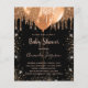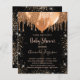 Für ein elegantes, modernes Brautparty. Ein stilvoller schwarzer Hintergrund. Der vergoldete Glitzer und die Ballons sind mit dunklen Imitaten dekoriert. Personalisieren und fügen Sie einen Namen und Party-Details. Der Name wird mit einem handgeschriebenen Stilskript geschrieben. Geschlechterneutral.