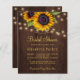 Rustikales Country Brautparty stilvolles BUDGET-Einladungsvorlage auf braunem Holzhintergrund mit großen goldgelben Sonnenblumensträuchern, Streichern von binkelfarbenen Lichtern und einem Imitat goldenen Typografie-Skript. +++++++++++++++ Einfach mit Ihren Daten personalisieren! ++++++++++++++ Die Einladung ist geeignet für Gartengarten-/Hinterhofgarten-rustikale Brautpartys zum Brunch/Grillabend. ++++++++++++++++++++++++ BITTE LESEN SIE DIES VOR DEM KAUF! Dies ist eine preisgünstige Hochzeitskarte auf einem Blatt Papier gedruckt (jedes Blatt hat eine Karte). ++++ Für die beste Vergleichspreisqualität empfehlen wir die Auswahl des Semi-Gloss-Papiertyps (es ist dick genug, um für Schreibwaren verwendet zu werden) +++++ Wenn Sie Briefumschläge benötigen, wählen Sie die ENVELOPE OPTION. +++ Doppelter Karo alle Informationen und Rechtschreibfehler Ihres Textes, weil Sie genau das erhalten, was Sie sehen - niemand anderes wird vor dem Drucken etwas Karo. ++++ Diese Karte ist für die Größe 4,5" x 5,6" konzipiert. Wenn Sie eine andere Größe der Karte wählen und Text außerhalb der Seite geht, muss alles repariert werden, bevor das Produkt in den Warenkorb aufgenommen wird. Bitte frag Live Design Service für Hilfe.