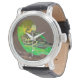 Uhr, Vintage Männeruhr mit schwarzem Lederarmband