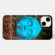 Schutzhülle für ein iPhone, speziell mit einem blauen Buddha-Kopf als Hauptwerk. Dieses besondere Design ist Teil einer Sammlung des Künstlers Mark Ashkenazi, bekannt für die Integration von Buddha-Bildern in verschiedene Kunstformen, einschließlich Telefonzellen.