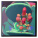 Das farbenfrohe abstrakte Kunstwerk von ZoeSPEAK auf dieser großen Keramik Tile entstand aus einem Originalfoto einer agave Pflanze. Die Foto-Ansicht ist von oben, zeigt die tiefen rosa Blume Buds vor ihrem Hintergrund von bläulich grünen scheibenförmigen Blätter. Das Bild ist von einem schwarzen Rahmen umgeben, für ein knisterndes, modernes Aussehen.