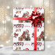 Das wiederholte Muster auf diesem niedlichen Weihnachtsverpackungspapier ist ein Bild eines braunen und weißen Pit Bull Hundes, der eine rot-weiße Weihnachtsmannmütze trägt, mit einem schwarz-roten Büffel-karierten Kissen hinter ihm und einem sich koordinierenden Geschenkpaket mit einem goldenen Band neben ihm. Es gibt auch einen Büffel kariert und den passenden Text, der "JOY" sagt. Stilisierter, roter und schwarzer Büffel karierter Text sagt MERRY CHRISTMAS", und Ihre eigene Unterschrift ist in zwei Bereichen für Sie individuell.